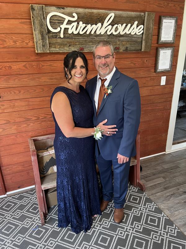 Beautiful Dress! Flattering and forgiving material! I will be wearing this to my Daughters Wedding!