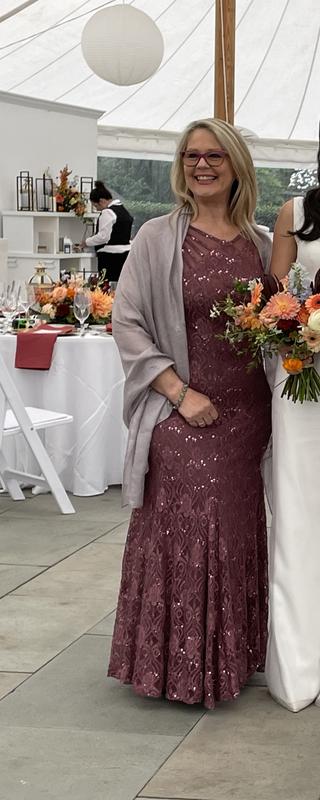 This dress is so much more beautiful in person! This will be my dress for my daughter’s upcoming wedding, very flattering for a curvy woman’s body!! Ian 5’6” and the length is perfect!!