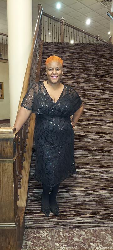 Love this dress. Sparkly and stretchy. Perfection in a little black dress.