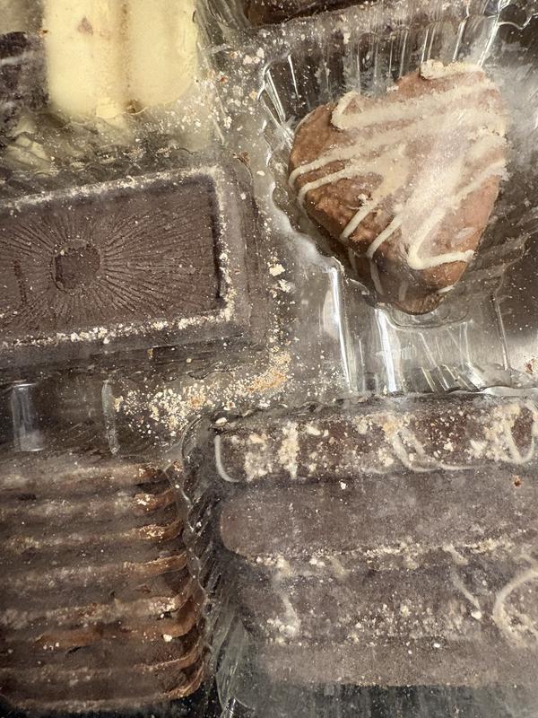 Not sure if I received a ‘bad batch’, but these were terrible. They arrived as a gift for someone. Thank goodness I opened them to check out before wrapping! They were broken up and scattered within the box. I opened plastic to taste and they were such poor quality I’m surprised Macy’s is selling these. Get rid of this poor quality product.