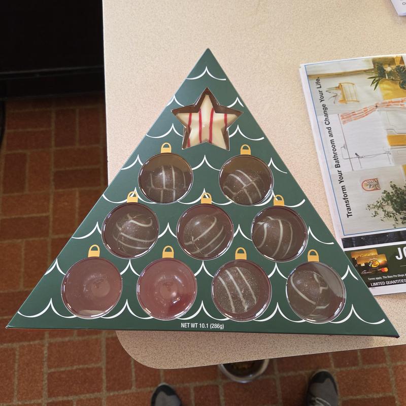 I wasn’t really too thrilled with this gift. I gave it to the intended person, but I should’ve really gotten something else. But time was of the essence. Every single cocoa bomb was separated in the middle. None of them were round anymore, but maybe two and the star. I mean they’re going in hot cocoa anyway, but presentation is very important as well.