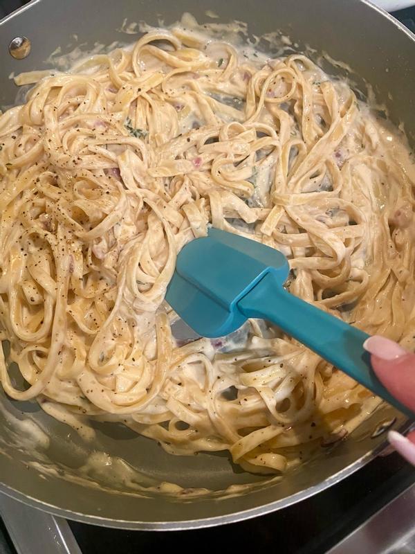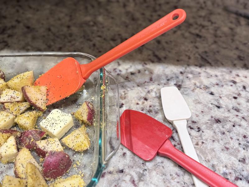 Influenster sent me this through their sampling program and I couldn’t be happier that they did! This set is 50% spoon and 50% spatula. I’ve used these for mixing, folding, scraping — works for everything! They’re dishwasher safe making them the ultimate staple in my utensils! Also be extra careful if rested near the side of a hot pan/stove handles may melt!