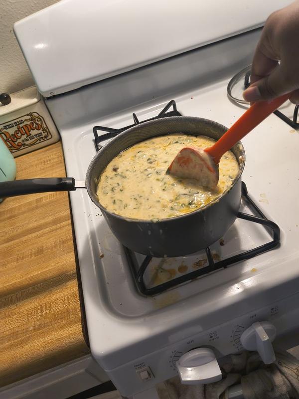 Love when utensils can serve multiple needs! They scoop, scrape and are safe for all types of cookware. Handles are long to keep hands away from heat, while being comfortable to hold when mixing and using. Dishwasher safe and withstand high cooking temps. Daily use if not one, sometimes all four!
