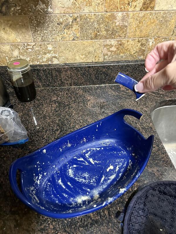 This two-piece set sits comfortably inside the 4. 5-Quart Casserole Dish as intended. The convenient handles make for easy transport from the oven to the dinner table.