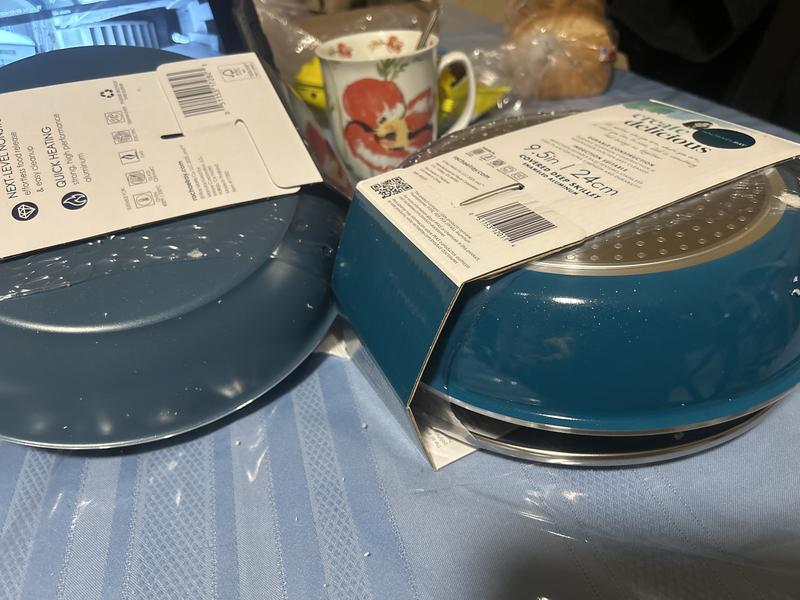 I just got my order and this teal looks more like a green color than the teal blue. It should be. It does not match with my blue other pants that I had purchased versus the whole set, but I have tried one of these as long as you use, though utensils that are for nonstick pans, you should have no problem with it and never use a high flame on these pots or pans that’s where you might go wrong. The pictures with the two pots the blue one is on the bottom on the left-hand side and as you could see this teal shimmer is the shiny green one the gray pots, but I was looking to get all my pots the same blue type of color.