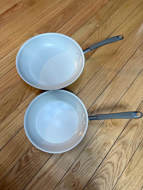 I love the color Hazelnut of Cucina Ceramic skillet set. I always use Tefal brands cookwares for my entire life. First time trying this Rachael Ray pans, I am falling love. I used less oil to cook or fry foods. The important reasons to love are they completely nonstick and wash off food easily. I am obsessed with the set. Price are reasonable for 2 pieces. Love it very much.