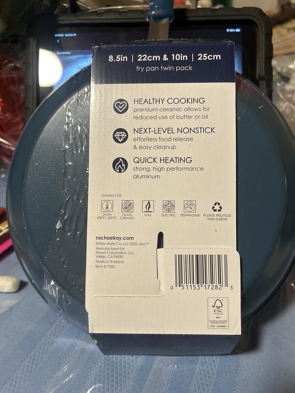 I tried one out to replace one of my old frying pans, nonstick Rachael Ray’s pot pots are great. Finding the right Blue to match them all together his sort of kinda hard but as long as you use the appropriate utensils for nonstick pots, you can’t go wrong no scratching no damage on the inside when you’re cooking that is the key use nonstick utensils.