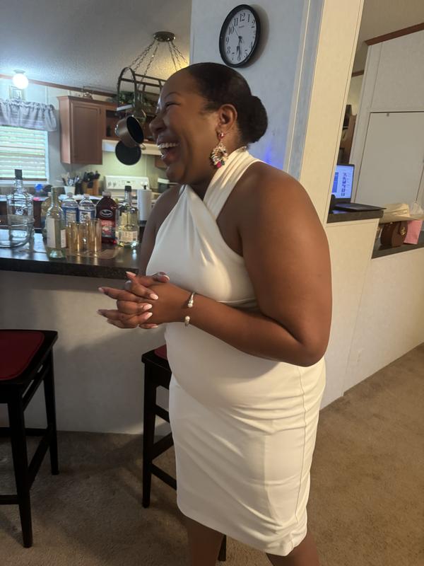 This beautiful white dress from Rachel Roy was made just for me. It is elegant and classy. I fits perfectly with my body shape. The material is very soft, smooth and comfortable.