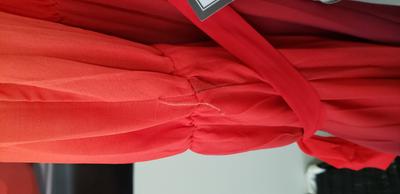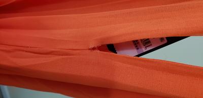 the picture of the dress is beautiful. Gorgeous colors. Its not what I got. There is hardly any orange nd its mostly all red looking purple only at the very bottom. I know varagated will be different but it doesn;t look the same. There is a extra plastic string in the tie that doesnt belong that would easily cause a run in the fabric. Returning.
