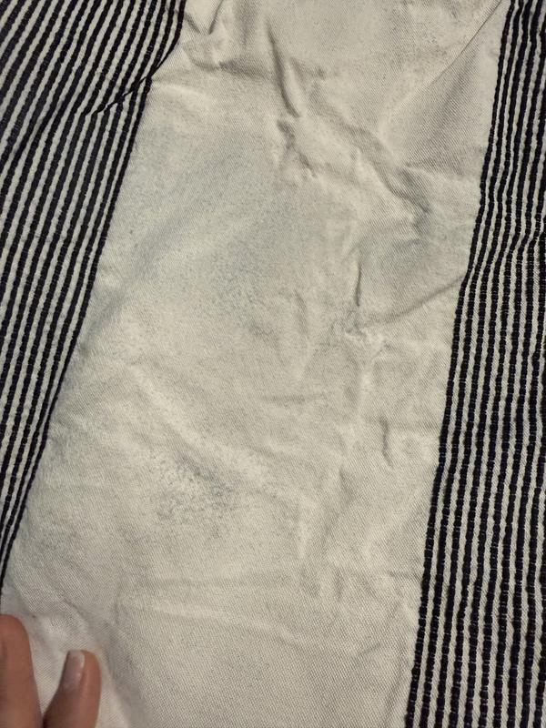 The color migration is poor. I washed the product as soon as I received it. Unfortunately, the black strip bled and stained the white part, leaving dark marks. In addition, the filling shifted after washing, it became uneven and clumped to one side.