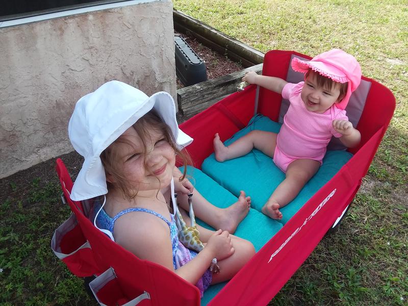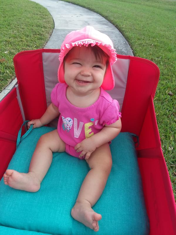 This was the perfect wagon to use with our 2 1/2 yo granddaughter when she was visiting us. Easy to put together, to fold/unfold, and transport in a vehicle. Worked well on pavement, grass and dirt paths. She learned how the zippers worked and could climb in/out by herself. Lots of room for stuffed animals, books, snacks, etc. We added two small inflatable seat cushions for a truly comfy ride!