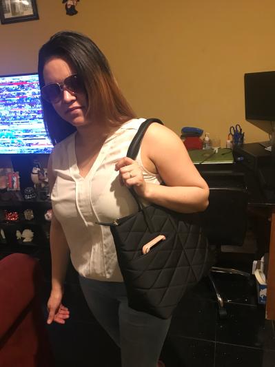 I have this purse in grey and liked it so much, now have it in black. It is the perfect size (holds all of my stuff without being a huge tote), easy to zip and has plenty of interior pockets. I love the quilted look so this purse is for me!