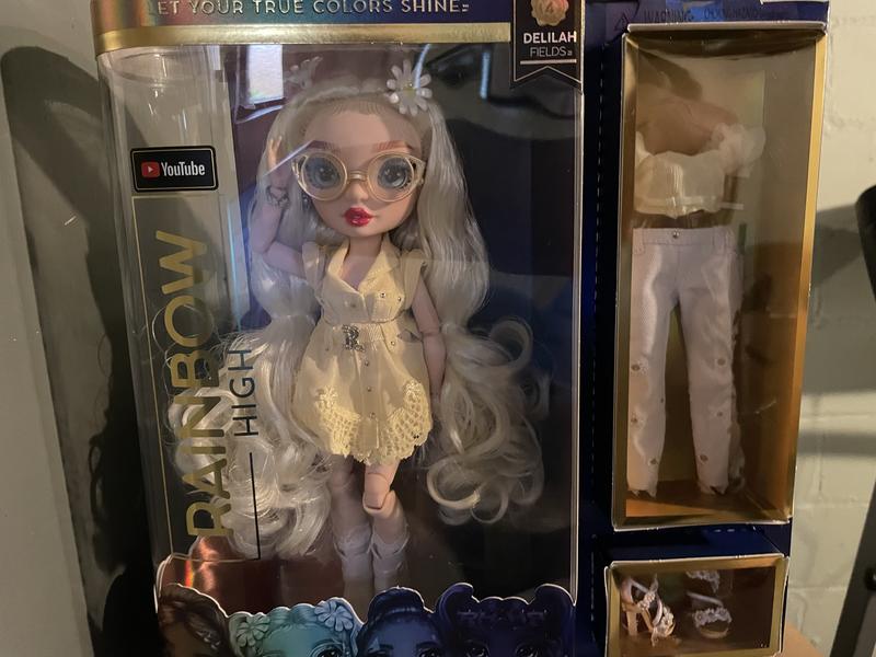 I saw this cutie at my local Big Box last fall and didn't pick her up right away. She was swiftly sold out and remained sold out. Up to that point, I'd been unsure about the Rainbow High line (mostly b/c of my sporadic and very unpleasant dealings with other modern Hasbro and Mattel fashion dolls). However, it was around the time I first saw Delilah that a grubby Gabriella Icely that I'd found at a thrift shop that let me see the quality and creativity that went into this line. Gabriella cleaned up great and I knew then that I wanted that little daisy girl I'd seen new over at Big Box. I never did find her. I checked all over resale sites and the price was insane. That's when I finally landed on MGA's own storefront and quickly snapped up my Delilah. Getting her out of the box and taking a look up close, I realized that she's got the same kind of albanism that a high school friend of mine had. So, Delilah has been rechristened with that friend's name and she's joined my Star Trek Megos for fun and games.