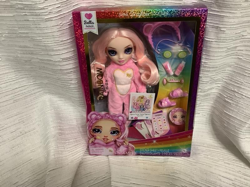 My daughter received the Bella Parker (pink) pj doll and absolutely loves it! She comes in a onesie and has a pair of cute slippers, face cream, face roller, headband and eye masks. She also came with a bunch of stickers to decorate her face but my daughter prefers to use on herself. I’m glad that I don’t have to worry about an unnecessary amount of little pieces and she loves playing spa day with Bella like we do at home. I will definitely be buying another.