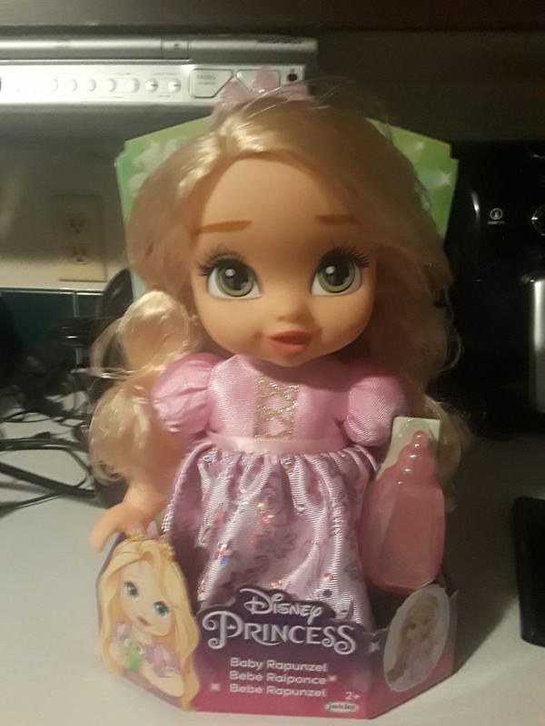 I received this as a sample. This is our first baby doll of the princesses. It is super cute. Loved the look and style of it. My daughter just adored it. It’s not heavy. Lightweight, easy to carry around. You get a few accessories with it.