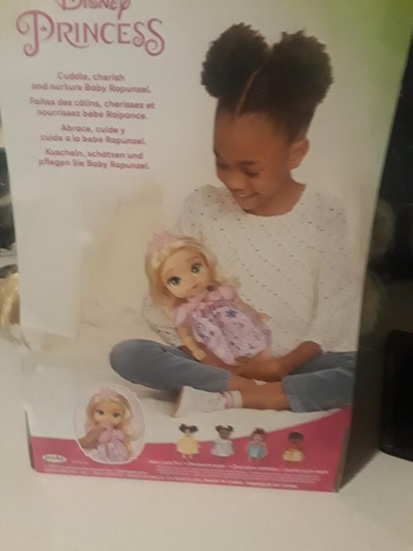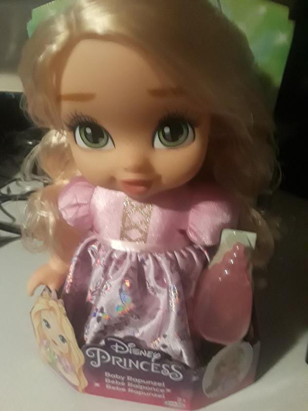 My daughter really have fun playing with this Disney rapunzel baby doll. The doll is just so pretty and I love how it says some phrases and her hair is just long and pretty. The doll material is good, it has some soft parts, also the details of the dress and the face is really pretty too. My daughter loves cuddling with it and almost take it everywhere. Overall I think this rapunzel baby doll is a great gift for a toddler.