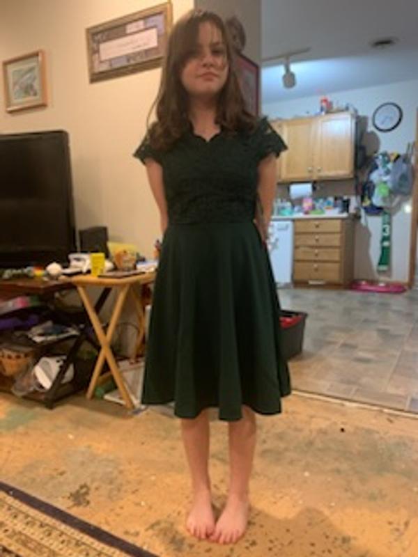 11 y/o granddaughter chose this dress for cotillion. She looked beautiful! Great fit with classic elegance.