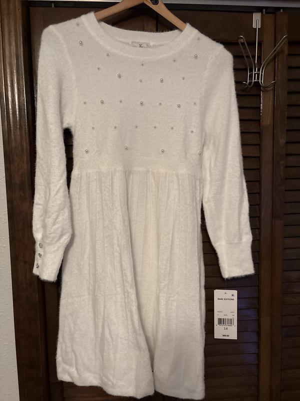 Girls' 7-16 Long-Sleeves Pleated Sweater Dress