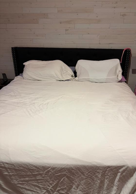 I got this four piece white sheet set for a complementary. This is the most softest sheets you can have in your bedroom. It comes with two white pillow sheets, and the fitted sheet and elastic that goes under the bed. This thing when you have it against your skin, it is so soft, silky and it feels like it’s cooling. It’s just so comfortable and I slept like a baby in this set. I really love the feel of this. I would definitely buy more, the white set makes it look luxurious and premium, even my husband loved how it felt he said these are really soft sheets! Even the pillow case was soft and cooling. This makes me feel like I’m sleeping at a hotel that’s luxury. It’s made with Egyptian and organic cotton.