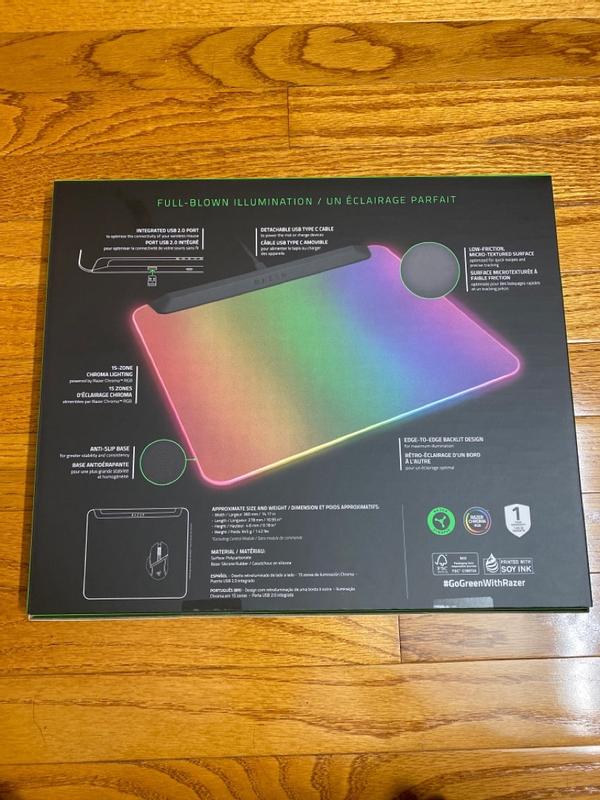 This is great mousepad with RGB lights. Tge mousepad is a smooth texture. It has 15 individually customizable lighting zones. USB c charging capability.