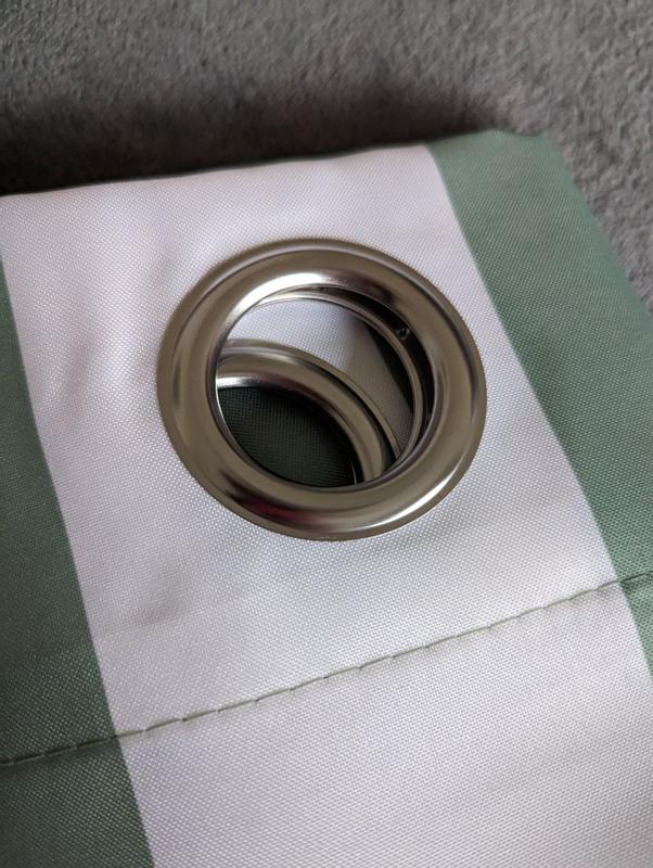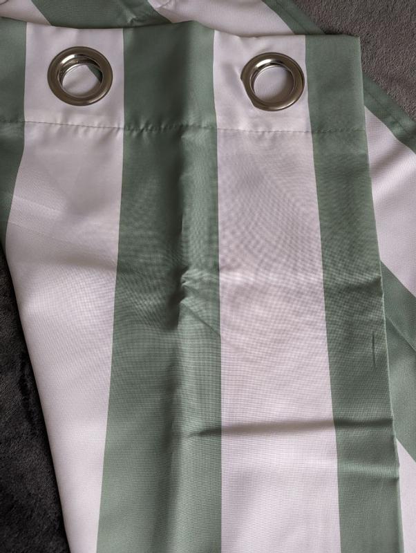 Beautiful green and white curtain. Very sturdy feel. Didn’t have any issues installing, was very simple. It’s a little more sheer for my taste but they still do block a fair amount.