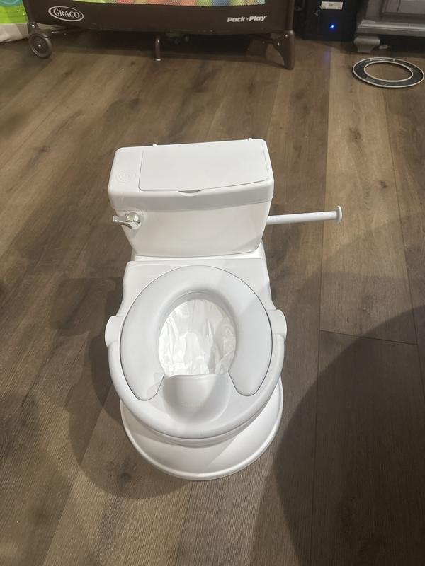 My son loves the flush sound and calls it his ‘big boy’ toilet! Such a help with potty training!