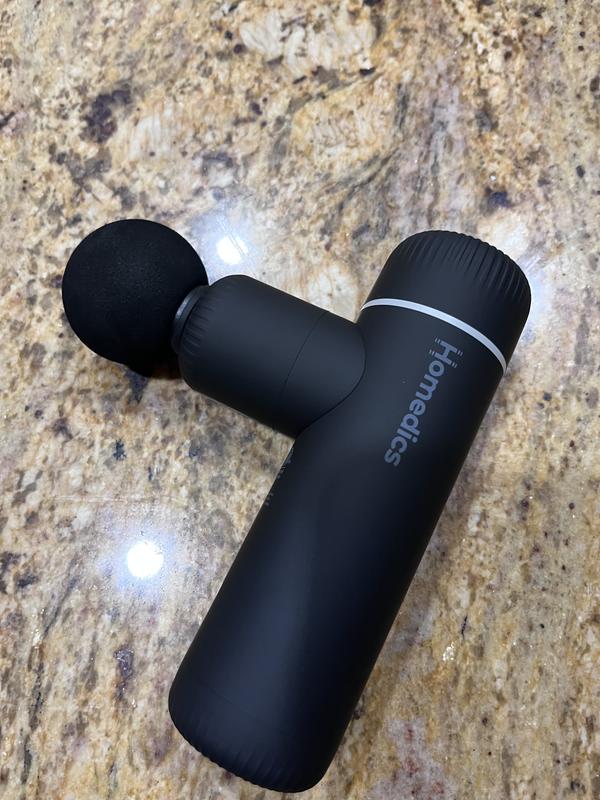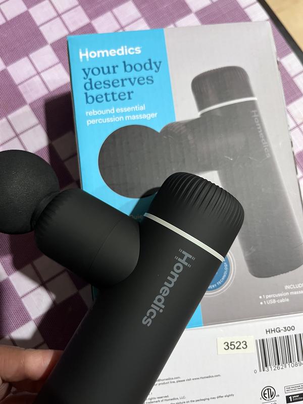 Love my cute, but mighty homedics rebound, percussion massager it’s super lightweight yet very powerful in terms of massaging I specifically love the soft touch head with 4 different massage speeds for different needs and spots on the quiet power. Technology is awesome. All the other massages I owned used to make a lot of noise but this is very efficient and portable quick to charge and easy to use. I’m recommending this to all my friends now.