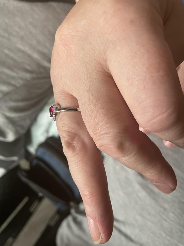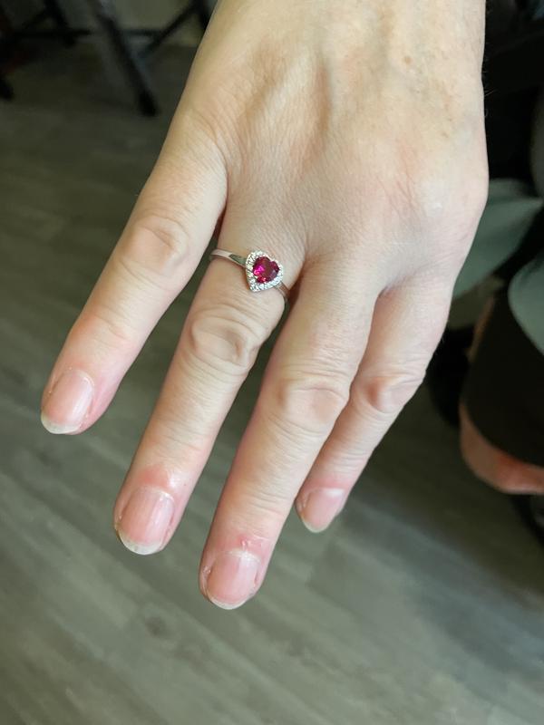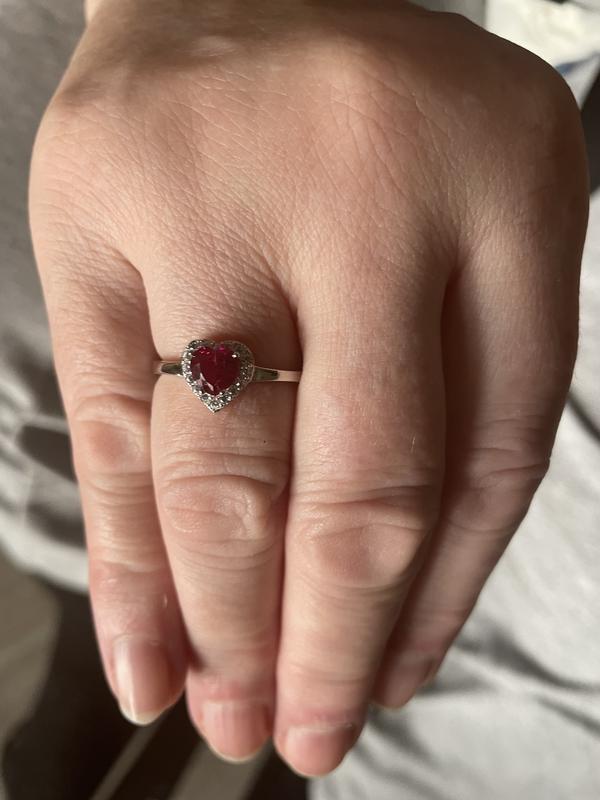 Red, Green or Purple Heart Cubic Zirconia Halo Ring in Rhodium Plated Sterling Silver