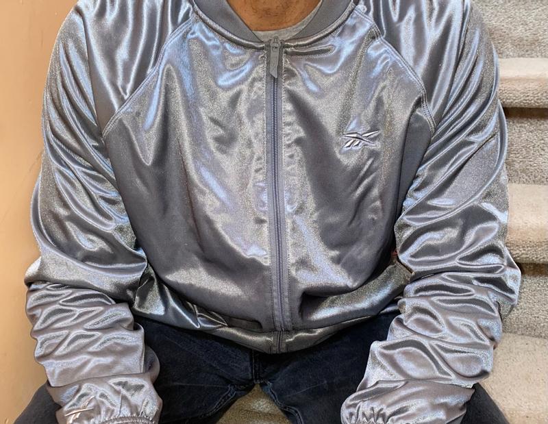 This Reebok bomber jacket fits great and true to size. The material is good quality and durable. The material is a smooth satin feel, and it's wrinkle free. It's lightweight, but it's warm on the inside. The sleeves are long, just how I like them. I like the simplicity of the logo on the front. Overall Reebok will always be a classic brand.