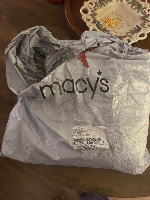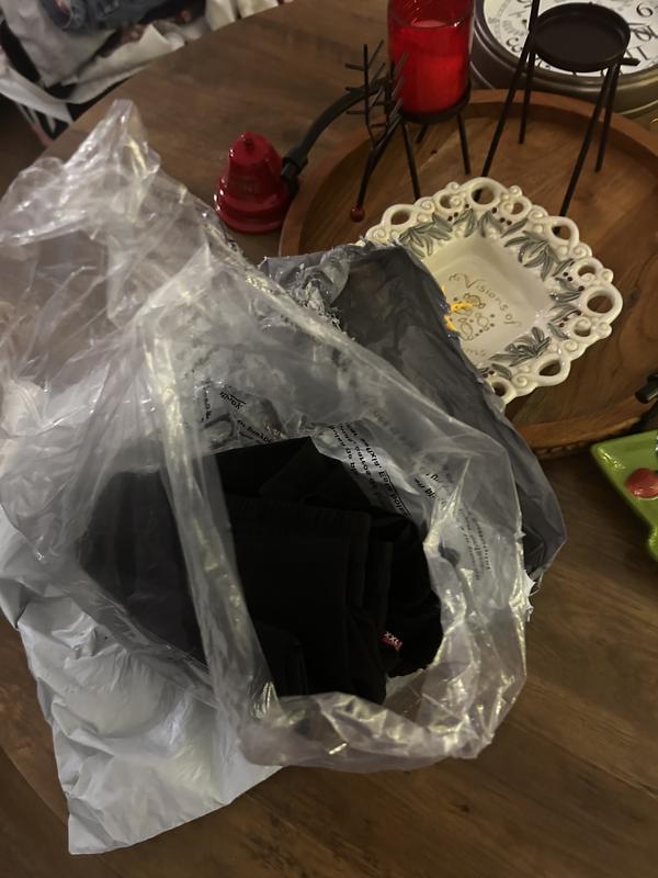 It looks as if someone opened not one, but both packages, took the tag off, tried them on and then put them back and taped the bag. There is even a white stain on the waist band.