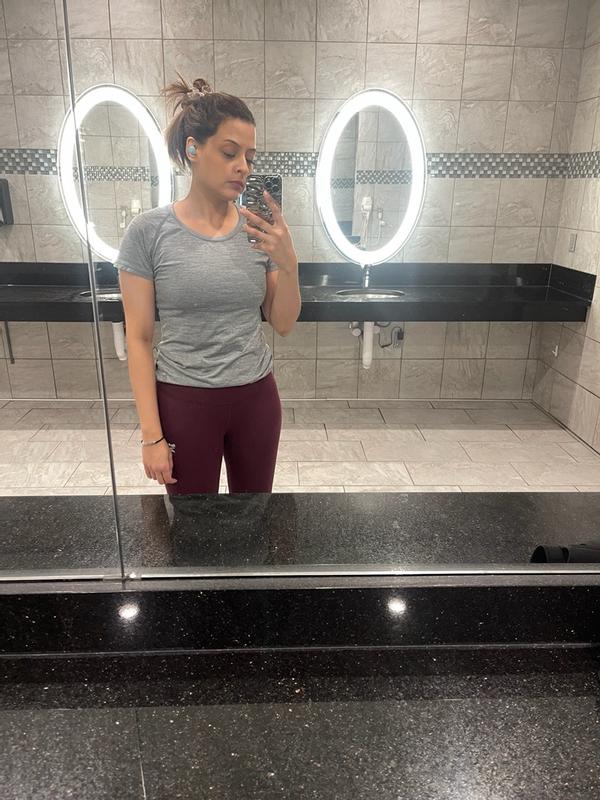 ADORE the color. Thickness is great. Relatively soft, although a little stiff. Not a lot of stretch so Id say they run on the smaller side. Warm them to hot yoga - no sweat marks! My biggest issue? The seam in the crotch!!! Like this is Not flattering on women. Or comfy