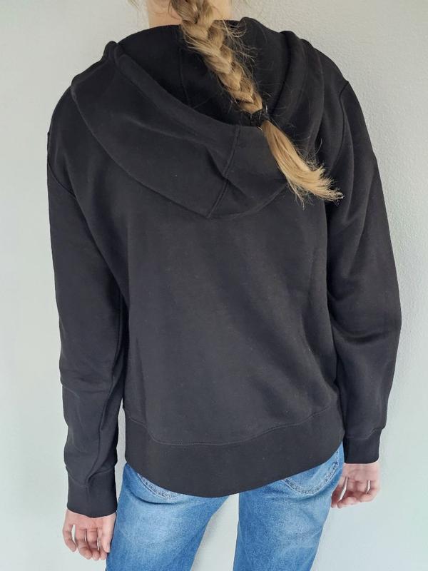 I chose this sweatshirt for my daughter who is almost 12. She's very tall and slim and the size XS fit her perfectly, with some extra room to grow. The overall look and quality of this hooded, zip-up sweatshirt is very nice. It's lightweight, yet feels better than some of our other sweatshirts. I like that this is also relaxed fit because it is roomy and can accommodate layers underneath. It's also plenty warm and cozy! I would definitely recommend this!