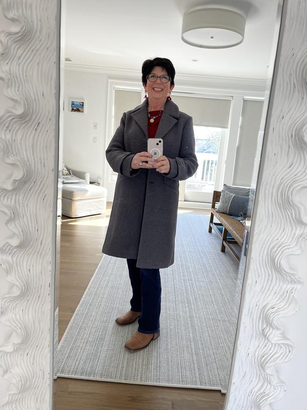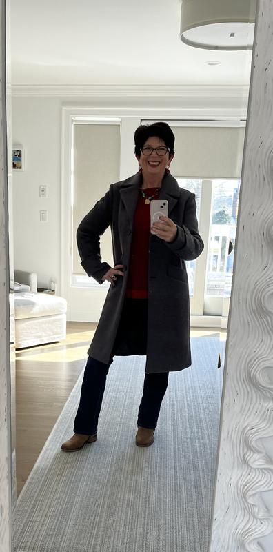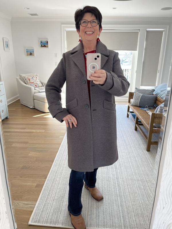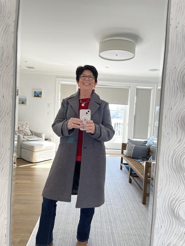 This is such a beautiful coat. I've been wanting a longer wool for awhile and this is perfect. The fit is great and love the color. It's not ichy like some can be. You can either dress it up or down and still looks great. So glad to have added this to my coat collection.