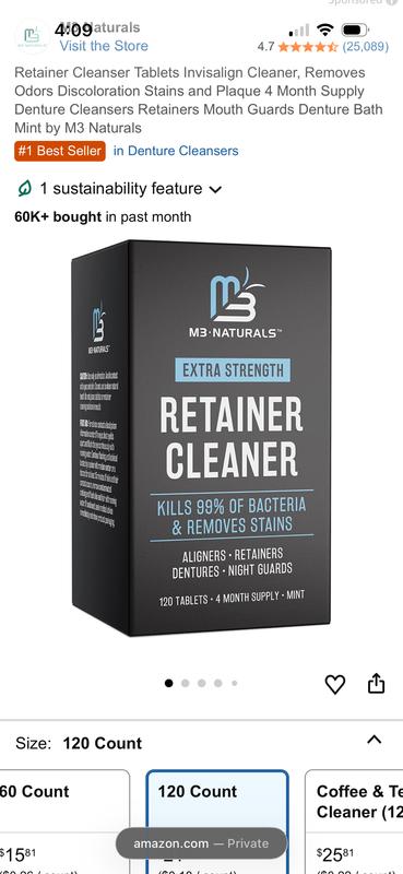 Hi Andrea Thank you so much for sharing your experience. We’re happy to hear that the M3 Naturals Retainer Cleaner has been easy to use and is working great for your routine. Keeping retainers and dental appliances clean and fresh with effective cleaning tablets designed for regular use is exactly what this product is made for. We truly appreciate you taking the time to leave your feedback and are glad it’s been a great fit for you. Best, Ketty M3 Naturals Support