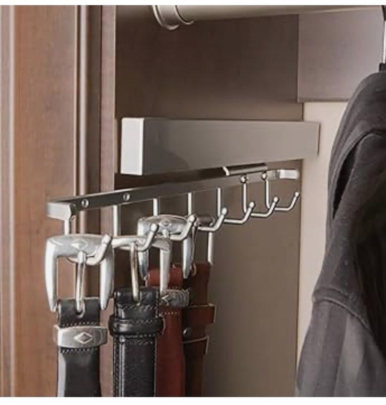 this rev-a-shelf pull out belt rack closet storage organizer is amazing. jt js super heavy duty (and heavy). my only complaint with this belt rack closet storage organizer is the color. i wish it was black not chrome which is just personal preference