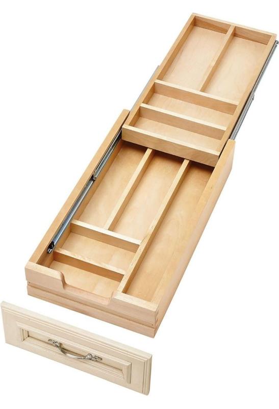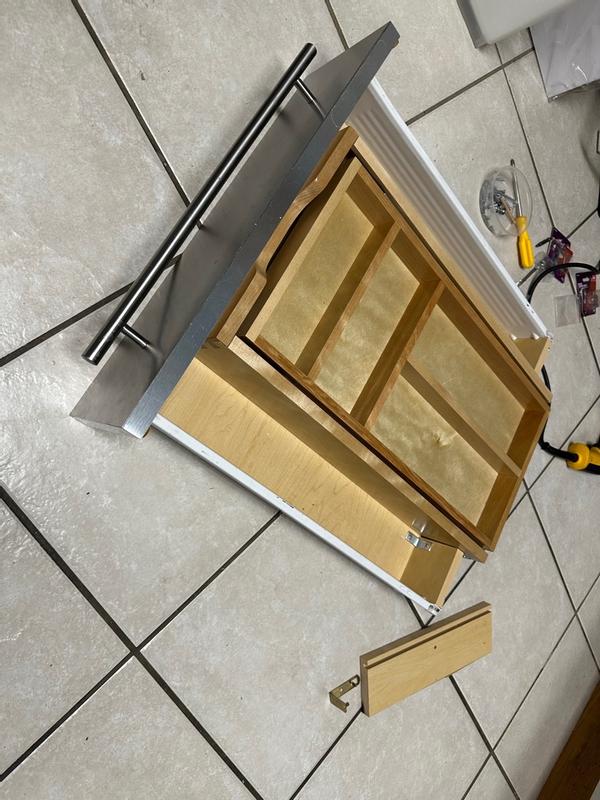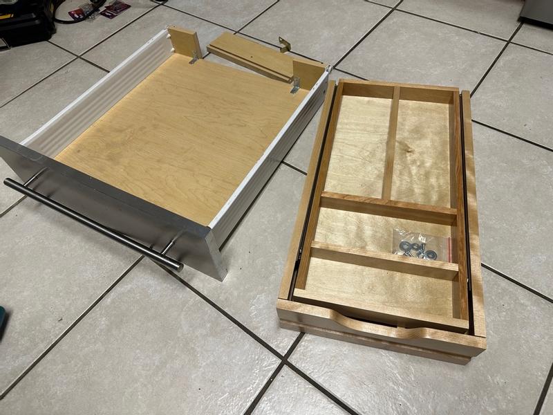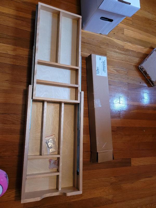 I thought this was a drawer organizer but it is an actual drawer. The package gives you all the parts to install the new drawer. All you need to do is add the front face. I didn’t have a drawer space with the same width but it fit inside my current drawer so I used it as an organizer. The back was about 3/4 of an inch too long if I placed it inside my drawer so I cut the back of my drawer so it could slide in. I’m reinforced it inside with L brackets and now my drawer has lots of extra storage.