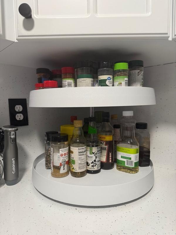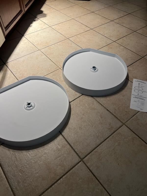 The Rev-A-Shelf 20 in lazy susan d shaped cabinet polymer two-tier shelf in white is a nice addition to any kitchen. It comes with easy to use instructions for installation. It has sturdy plastic shelves with metal bars for stability. It allows you to transform a cabinet into a swirling cabinet for easy access to all your pantry goods. We are looking at upgrading our kitchen, and this will be a great addition to that process. You could also make it into a 2 tier swivel shelf if you can't make it into an actual lazy susan, so it's multi-purpose in its uses. I am looking forward to using this.