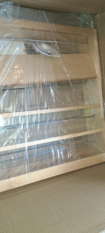 I was so excited to get this beautiful pull out shelf installed in our kitchen! The more organization we have the better! It's very well made and can hold a ton of stuff. It's nice to be able to put all my spices in one place and have them nice and neat. It was very easy to install with clear precise instructions. I love the maple and slightly glossy finish as it fits in well with our color scheme. The one thing I would say is that the shelves are not very easy to adjust because the holes seem too small for the pegs and it's difficult to get them in so I just left the shelves where they were.
