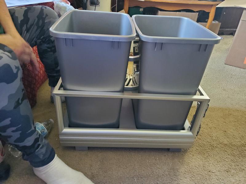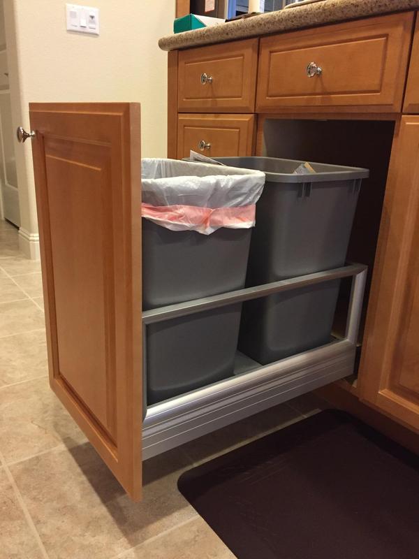 Rev A shelf by far made my kitchen more organized no more trah or recycling bins out side in my kitchen these amazing totes were easy to install and their have great quality fits perfect under my counter easy sliding mechanism their easy to clean and very durable I recommend these totes to anyone looking to clear the clutter and have space in the kitchen