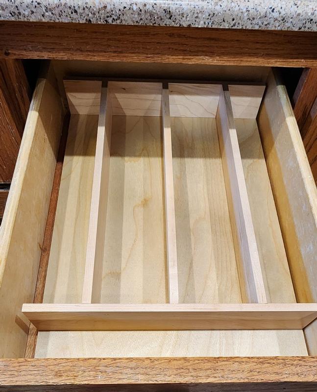 Nice wooden drawer organizer. It was a bit too large for my kitchen drawer and didn’t have enough storage capacity for all my utensils. It seems very durable and well-made though. Easy to install and just sits inside drawer.