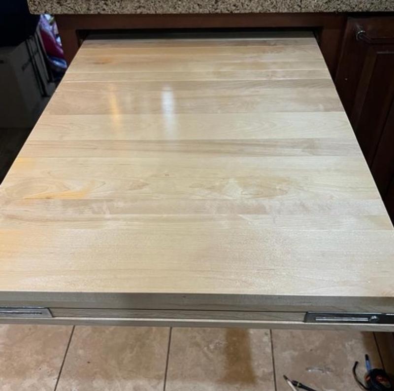 If you’re working with limited counter space, this pullout table is a game changer. It fits right into a drawer slot and gives you an extra surface when you need it. perfect for meal prep or even holding small appliances. It feels sturdy, extends smoothly, and holds up to 100 lbs, which is more than enough.