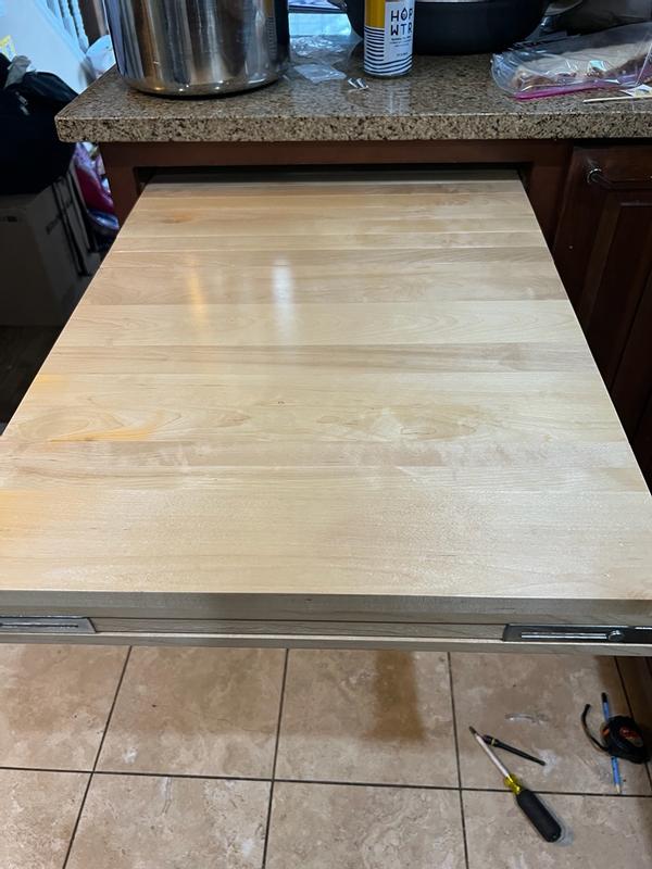 I am really excited about this revashelf pull out counter top. My husband constantly says we don’t have enough counter space so this is perfect. Very well made solid wood and rolls very nicely. Haven’t been able to install yet as our home flooded and still waiting for the kitchen to be redone.