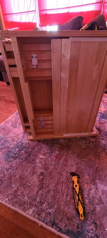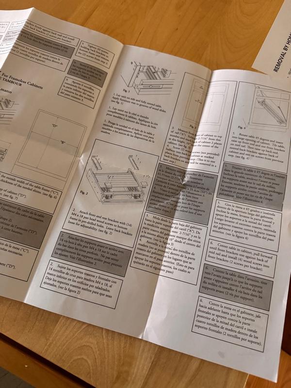 This was one of the harder projects to get through. It took us about 3 hours to complete. There were missing screws. On the assembled part some of the screws were loose as well. It didn’t come with furniture wax however that was the first instruction. The instructions were all over the place and hard to follow. However the quality of the table was great and wonderful to use. Also there were no holes on front so we can put our cabinet face and handle on the front. We had to drill new holes. There was no YouTube tutorial on how to install one of these either. But eventually we were able to make it work for us!