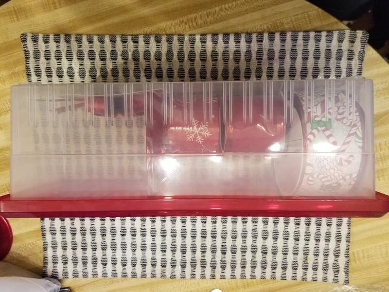 This is the first Christmas I am actually organized as far as my wrapping tools goes. These ribbon storage boxes are amazing! They are a nice size to fit an assortment of different size ribbon. It has inserts to help with keeping it all neat and you can even lead the ribbon out from the roll in a nice organized fashion without having to take the whole roll out and making a mess. The boxes are very sturdy and will last for many many years to come. I am loving them! I would highly recommend them you won't be disappointed!