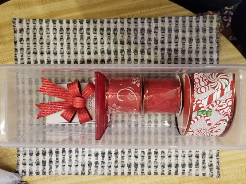 These boxes are an awesome way to keep all my ribbons organized. I even sneak in a few bows! I like that the boxes are clear so I know what's in which box. These are easy to stack and can fit almost anywhere in a closet or storage box without taking up too much space.
