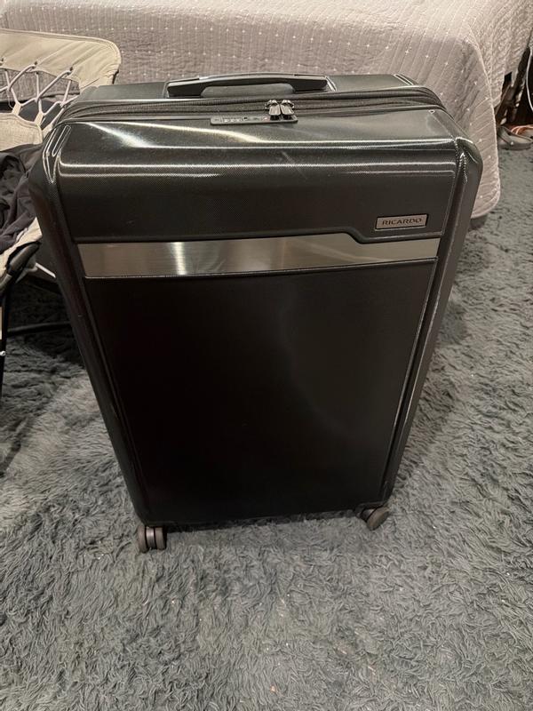 Please note: this review is for the larger (check luggage) version of the Palm Springs Spinner suitcase! Refer to the attached photo of the pamphlet for dimensions of the bigger one. This arrived just in time to send with a relative overseas (which I’ll retrieve later this year and fill with shopping goodies to bring back home) because my previous hard shell luggage was cheap and cracked in transit overseas during a previous trip. We filled the Ricardo Beverly Hills “Palm Spring” case to the brim with all the goods for my cousin to take back to her home and the luggage made it there with just minor scratches! The textured shell makes it more durable and resistant to scratches. When I go to visit her overseas later this year I can count on bringing my luggage back full without worrying about it busting like my previous one. Aside from being sleek and nice to look at, I appreciate the many thoughtful features that make packing for travel more convenient. You can see several details in the photo of the tag I included (adjustable compression panels, many packing compartments) but it is also expandable for some extra space and the swivel made lugging the heavy suitcase around easier at the airport for me (before check-in to see my cousin off at the airport) and for her after arriving at her hometown and then taking the subway and walking to get to her place. We’re both “petite” and lack upper body strength but had no big struggles rolling the packed luggage around.