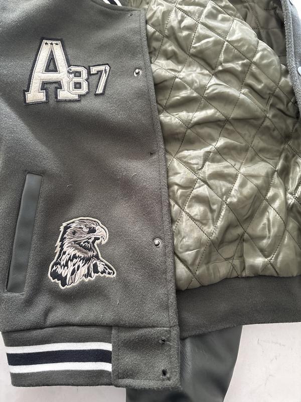 Give his casual look a cool upgrade with this varsity jacket by Ring of Fire, designed with playful patch details that add personality and style. The stand collar offers a snug, sporty fit, while PU long sleeves bring a sleek, durable touch. Easy snap button closure makes dressing quick and simple, and front pockets provide convenient storage for small essentials or a cozy spot to warm hands.