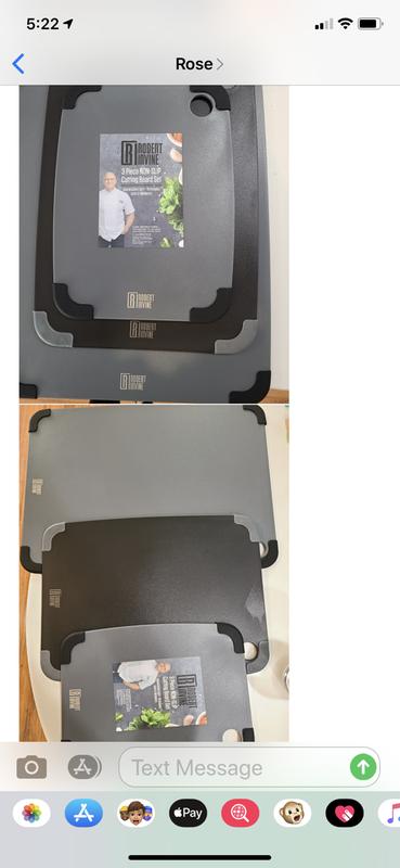 Rubber grips were loose in the box. They just won't stay on. Also board material is very soft and shows every cut and scrape. Disappointed as I've been pleased with Robert Irvine branded products in the past.