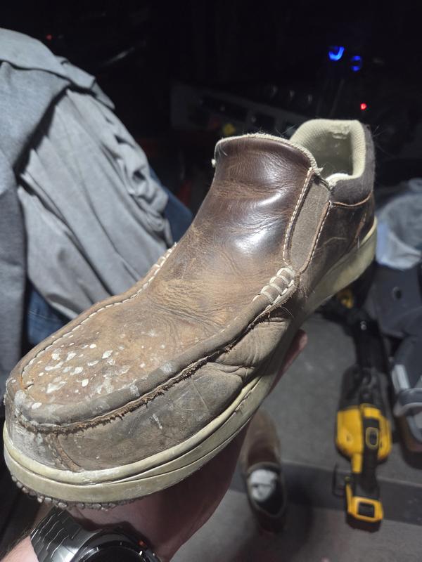I bought these shoes a while back. I bought these as work shoes, but I can wear them anywhere. They are very comfortable and easy to walk in. They are on the heavy side though. I accidently snagged one shoes on something, and it pulled the stitching out a little at the bottom corner of upper by the elastic side panels. Now that shoe fits a little loose.
