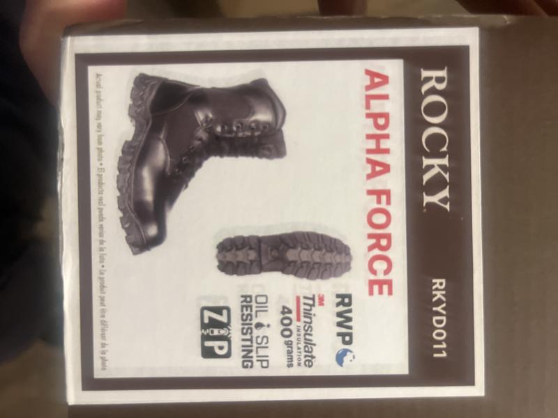 Part of the Rocky public service line, this boot helps you perform at your best by giving you the features you need in boots. These Rocky Alpha Force boots are made with the Rocky Waterproof system. This system lets air flow in, but keeps water out. Your feet stay dry. Guaranteed. Your feet also stay warm. These black leather boots have 400 grams of 3M Thinsulate Ultra Insulation. With dry and warm feet, you won't be distracted from the job at hand. To further assist with your duties, you need boots that can keep up with you. The Alpha Force has a special oil-resistant and slip-resistant RigiTrac molded EVA/rubber outsole. These soles really grip the terrain to help you maintain your footing. If you're on your feet for much of the day, you also want your boots to be comfortable. You want the Rocky Air-Port footbed. This footbed is a high-performance, cushioning and comfortable footbed that circulates air with every step.